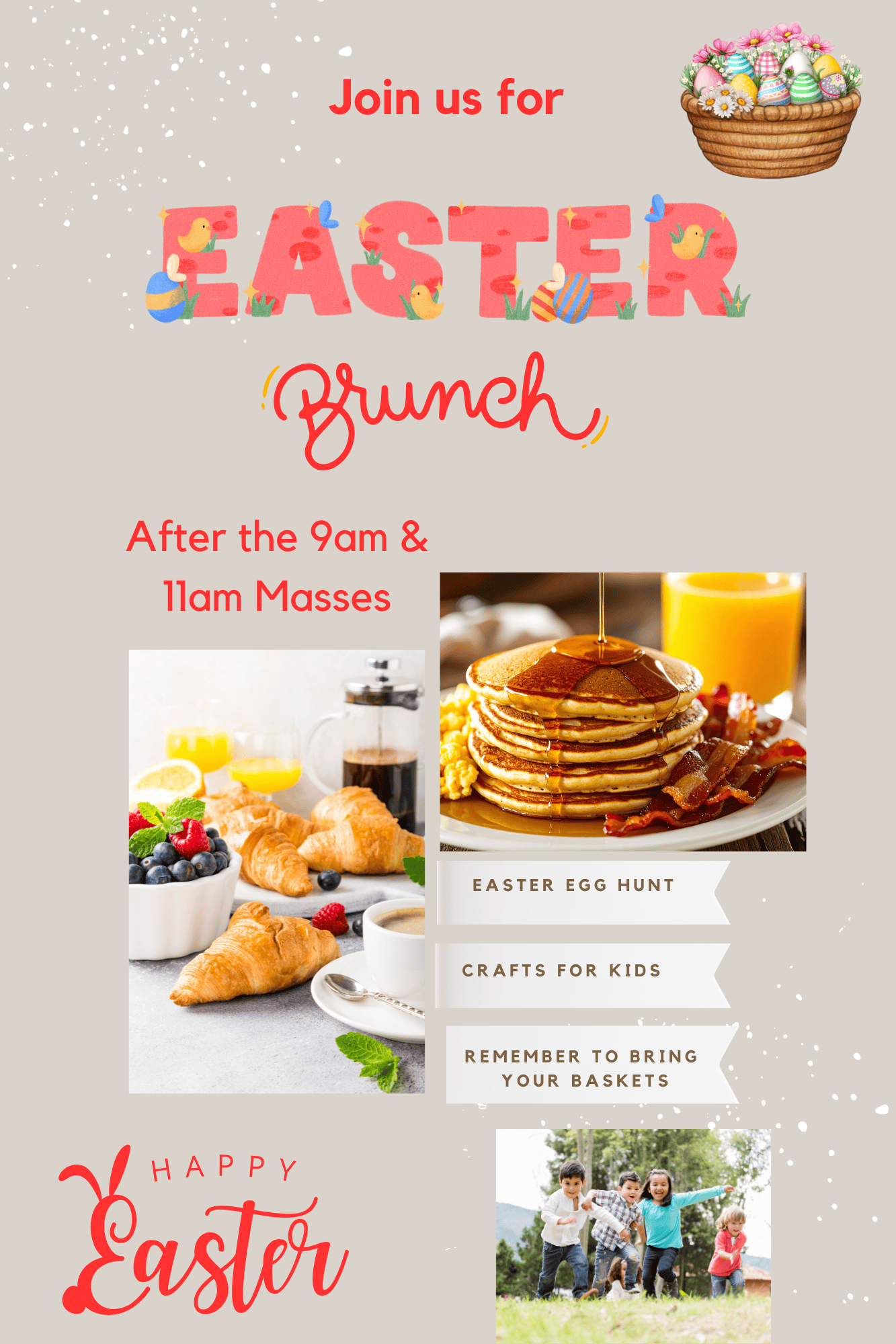 11AM – Easter Brunch, Arts and Crafts, Face Painting, Easter Egg Hunt
